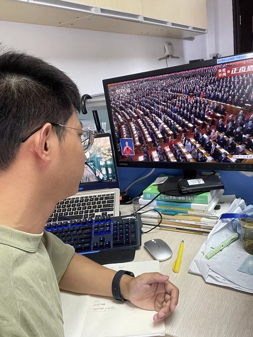 各位党员认真观看,深入思考,上午报告结束后,各位党员纷纷发表感想、感言,也表达了未来工作的奋斗决心。