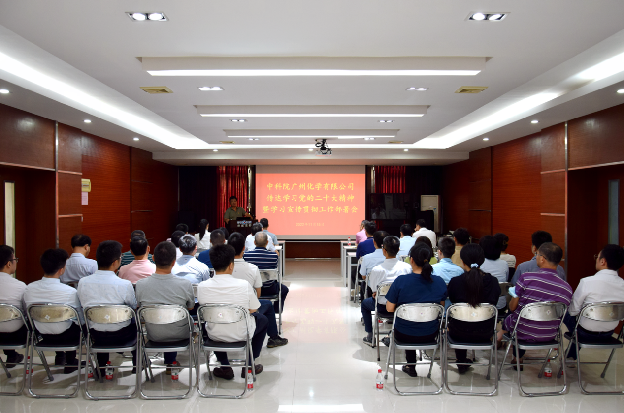 11月15日,中科院广州化学有限公司(广州化学)召开传达学习党的二十大精神暨学习宣传贯彻工作部署会,广州化学中层及以上领导干部、党委委员、纪委委员、控股公司总助以上领导干部、在职及研究生党支部书记和纪检委员参加会议,会议由党委书记胡美龙主持。