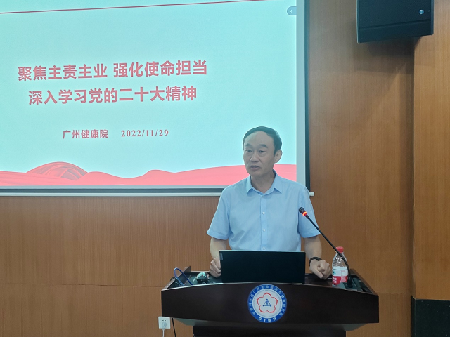 健康院党委书记、副院长段子渊作题为《聚焦主责主业 强化使命担当 全面落实党的二十大会议精神》和《中国科学院重要文件精神学习及落实思考》2个报告,带领与会人员深入学习党的二十大精神和中科院人才工作相关文件精神。强调要把学习宣传和全面贯彻落实党的二十大精神作为当前和今后一个时期的首要政治任务,要将学习党的二十大精神与抓好研究院的重点任务结合起来。研究院作为国家战略科技力量主力军的重要组成部分,要以国家战略需求为导向,聚焦主责主业,强化使命担当,围绕“十四五”规划实施、细胞谱系大设施、国重重组三大攻坚任务,狠抓工作落实,加快关键人才的引进和培养,确保对二十大精神的学习宣贯取得实效,各项工作更上新台阶,以实际行动为服务国家科技自立自强作出更大贡献。