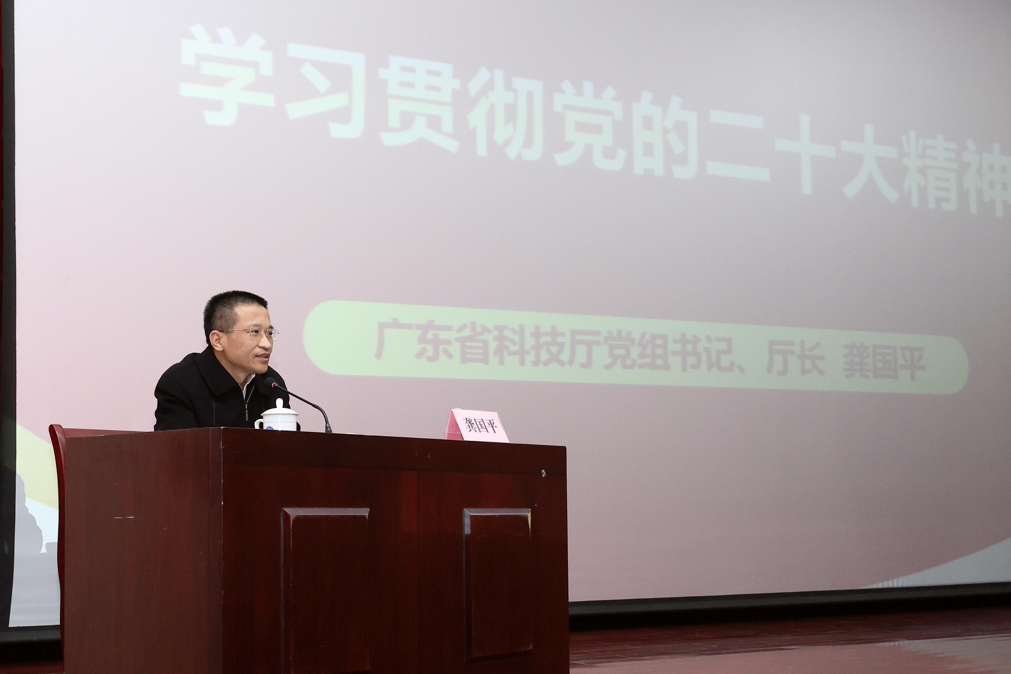 报告会上,龚国平以“学习贯彻党的二十大精神”为主题,从党的二十大主题和主要成果、过去5年的工作和新时代10年的伟大变革、马克思主义中国化时代化、中国式现代化、全面建设社会主义现代化国家的目标任务、坚持党的全面领导和全面从严治党、应对风险挑战等方面,结合广东科技创新实际,理论联系实际,全面解读党的二十大精神,深入阐释党的二十大提出的新思想、新论断、新战略,并提出了加强广东区域科技创新能力建设,努力推进高水平科技自立自强的思路和举措。