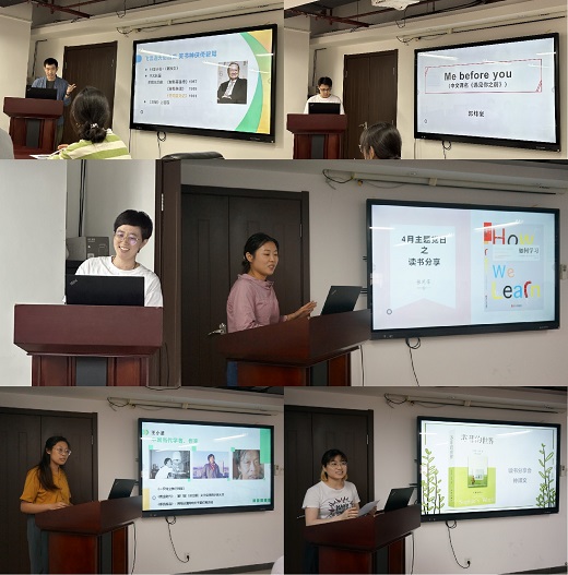 本次活动由党支部成员和团员代表共6人分享书籍。第一党小组成员廖东俣分享书籍《倚天屠龙记》,向大家讲述侠与义的豪情壮志,通过张无忌的人物解说揭示金庸先生的人生价值观。第二党小组成员郭炜豪分享书籍《Me before you》,讲述了懵懂的小镇女孩与下肢瘫痪老板之间的爱情故事,热爱生活、尊重生命、尊重每个人的选择是永恒的话题。第三党小组成员赵林洪分享漫画类书籍《人类是怎么霸气上天的》,以爆笑风格和丰富的航天科学知识为大家缓解科研压力。第四党小组成员张苑芳分享书籍《如何学习》,从神经科学和认知心理学出发,让大家了解大脑学习的机制,在学习中反焦虑。第五党小组成员魏兰苏分享李银河的《我的生命哲学》,以浪漫舒缓的文字引领大家思考人生的意义,生活永远不要忘了还有诗和远方。团员代表钟卿文分享书籍《苏菲的世界》,带领大家走入元小说的奇妙世界,启蒙哲学思考,唤醒内心深处对生命的赞叹和对人生终极意义的好奇。