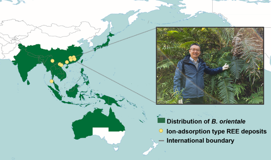 ??为探索超积累植物对稀土元素的富集机制,中国科学院广州地球化学研究所博士生何柳青在导师朱建喜研究员的指导下,与美国弗吉尼亚理工大学荣誉教授Michael Hochella合作,共同开展了相应的研究工作。经过前期调查与分析,团队将研究目光聚焦于一种名为“乌毛蕨”(Blechnum orientale)的蕨类植物上。乌毛蕨不仅为华南地区风化壳型稀土矿区的优势植物,还是稀土元素的超积累植物。它能够将稀土超积累到叶片中,并继承稀土矿土壤中富轻稀土的特征。