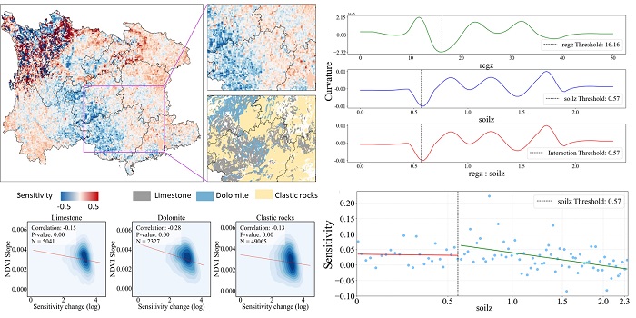 西南地区长期受高强度、高频率人类活动扰动。近年来,通过大规模封山育林等生态修复政策,森林覆盖度显著提升。然而,该区域广泛分布的喀斯特地貌具有土层浅薄、渗透性强等脆弱地质特征,叠加季风气候周期性干旱的影响,导致大面积造林在提高植被覆盖的同时,也可能引发土壤水分显著下降。因此,在区域植被快速“变绿”的背景下,亟需辨析“变绿”后影响喀斯特区生态恢复可持续性与稳定性的潜在生态风险。