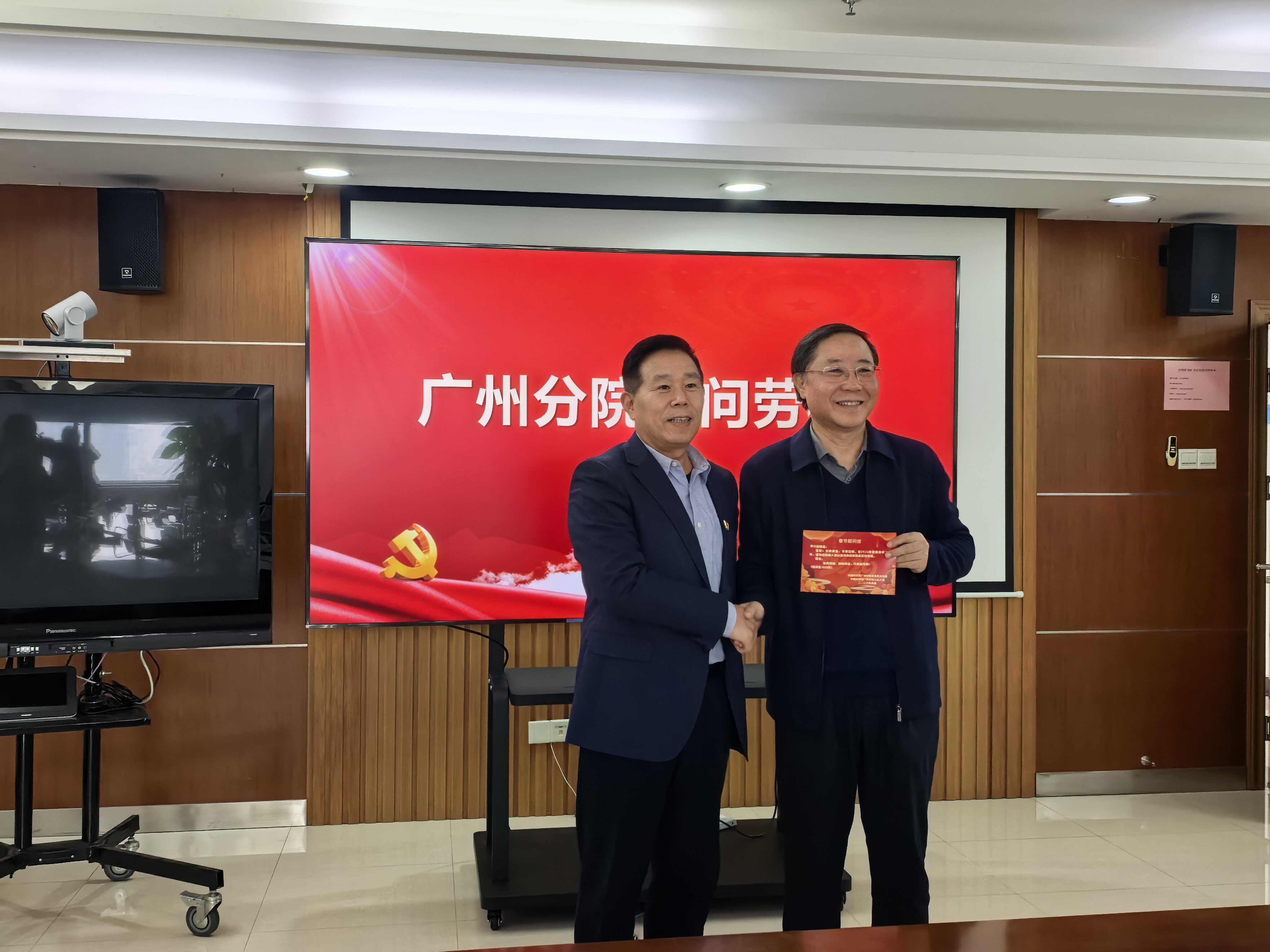 根据中央组织部、广东省直机关工委、中国科学院相关部门通知要求,近日,中国科学院广州分院分党组、直属机关党委,广州分院工委到分院在穗单位开展2026年春节慰问送温暖活动。广州分院分党组书记黄从利走访慰问了分院机关和在穗单位老党员、省级以上劳动模范、困难职工、困难党员代表,并向他们致以亲切的问候和新春美好的祝福。走访慰问期间,黄从利与老同志、劳模、困难党员和职工们促膝交谈,深入了解他们的身体状况和生活情况,认真听取他们对广州分院抢占科技制高点的意见和建议。