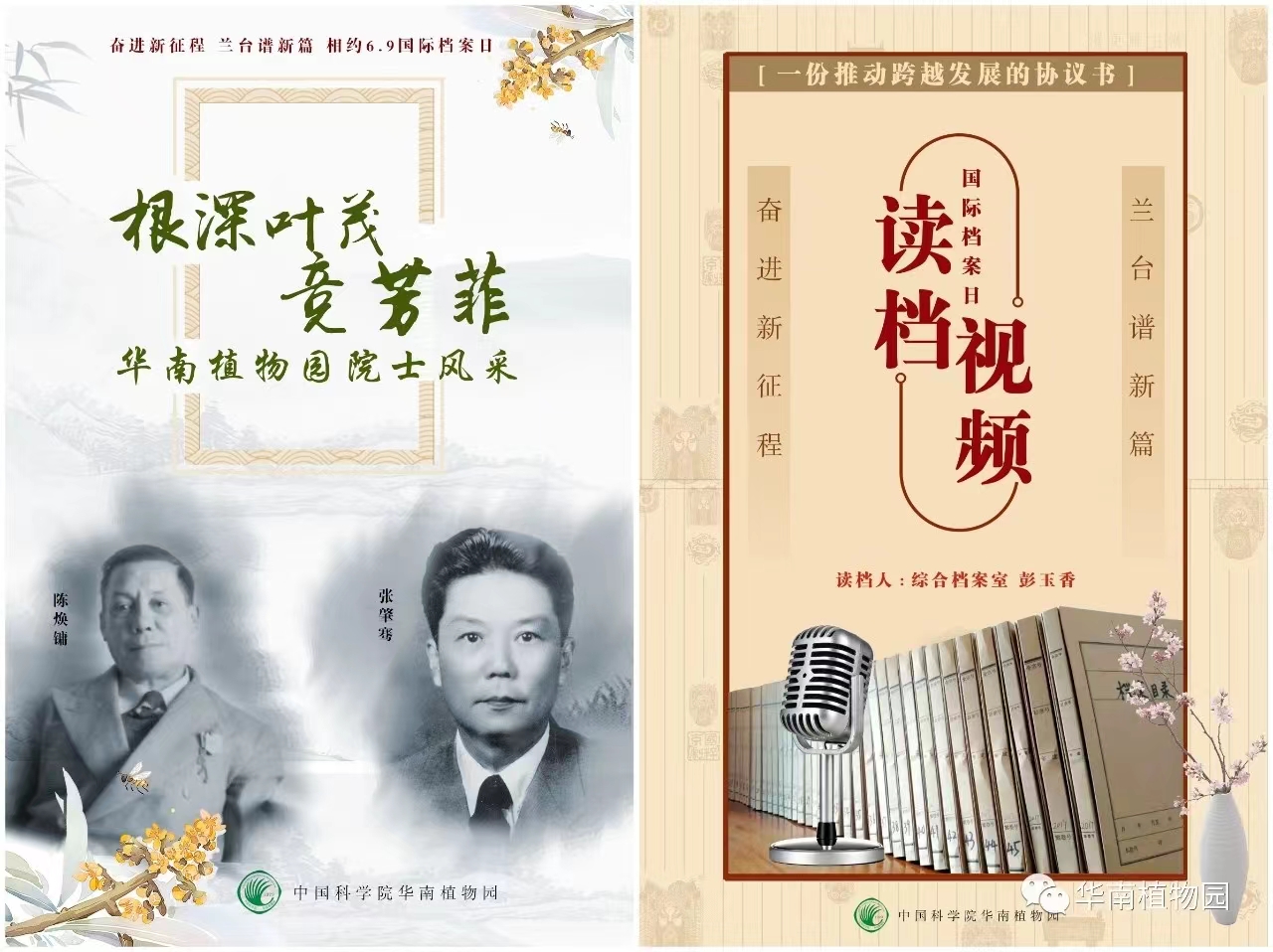????2023年国际档案日期间,华南植物园综合档案室参与了中国科学院读档活动,通过视频向公众介绍了2002年中国科学院、广东省、广州市三方共建华南植物园的协议,该读档视频获评一等案例。同时在综合办、图书馆及园退休干部陈忠毅老师等的协助下,精心制作了陈焕镛、张肇骞两位院士的纪念视频,弘扬与传承老一辈科学家开拓创新、甘为人梯的精神。两个视频分别获评二等及三等案例。2024年2月,这两个科学家视频在第十七届广东省科普作品创作大赛13304份参赛作品中脱颖而出,分别获得二等奖、优秀奖。