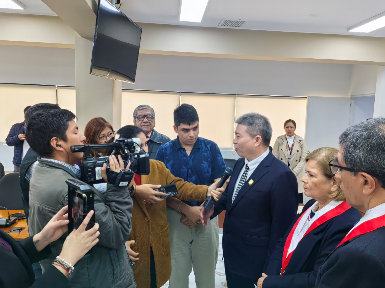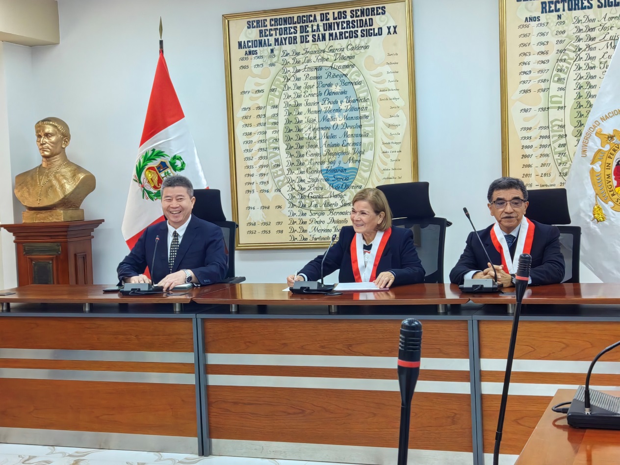 秘鲁国立圣马科斯大学校长Jeri Gloria Ramón Ruffner De Vega女士热情接待了华南植物园代表团一行?;崽钢?,Jeri校长表示华南植物园此次访问将开启双方新的合作篇章。闫俊华对Jeri校长的邀请表示感谢,并回顾了华南植物园与秘鲁圣马科斯大学在过去十几年合作所取得的成绩。他表示,秘鲁和中国都是全球生物多样性热点区域国家,秘鲁也是全球农作物起源中心之一,非常期待双方未来在生物多样性?;?、生物资源利用等多方面开展国际合作。闫俊华还代表中国科学院为圣马科斯大学Betty Millan 教授颁发了2023年度中国科学院国际合作奖,对Betty Millan女士对中国与秘鲁科技合作与交流所做的贡献给予了充分的肯定与感谢。