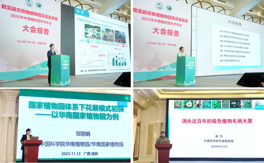 11月11-14日,以“数实融合助推植物园高质量发展”为主题的2025年中国植物园学术年会在广西桂林隆重举行。此次年会由中国植物学会主办,广西植物研究所、广西植物学会承办,汇集了来自全国90余家植物园、科研院所和学术组织的近400位专家学者。我园代表团积极参与了这一年度盛会,与同行们共同探讨了植物园在数字化时代的使命与未来。