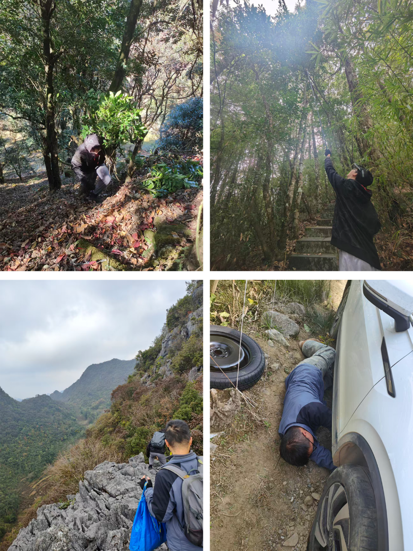 由于冬青属植物为雌雄异株,种群规模小,分布零散,且结实存在明显的大小年现象,为种质资源采集工作带来较大挑战。2024~2025年,在国家重要野生植物种质资源库(以下简称“国家库”)资助下,我园植物科学研究中心野生植物种质资源库组织专项队伍,赴广东、广西、海南、湖南、福建、江西、浙江、贵州、云南等9省66县,系统开展了冬青属种质资源专项采集工作。本次工作成功采集到叶片遗传材料82种221份,种子33种49份,并引种活体70余种。