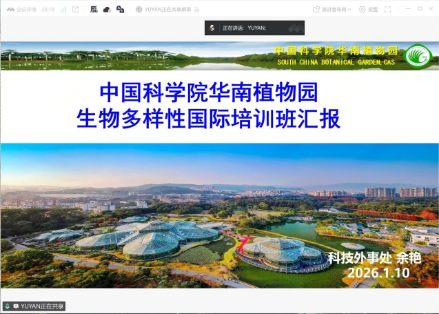 随后,园科技外事处副处长余艳分享了中国在生物多样性国际合作与能力建设方面的丰硕成果。自2009年起,华南植物园连续主办六届国际培训班,融合理论讲授、实验操作、野外考察、实践演练与文化体验于一体,为发展中国家学员赋能。2026年,培训将聚焦全球热点地区生物多样性?;ぜ苹?,面向“一带一路”及拉丁美地区,致力于培养贯通理论与行动的国际化人才。